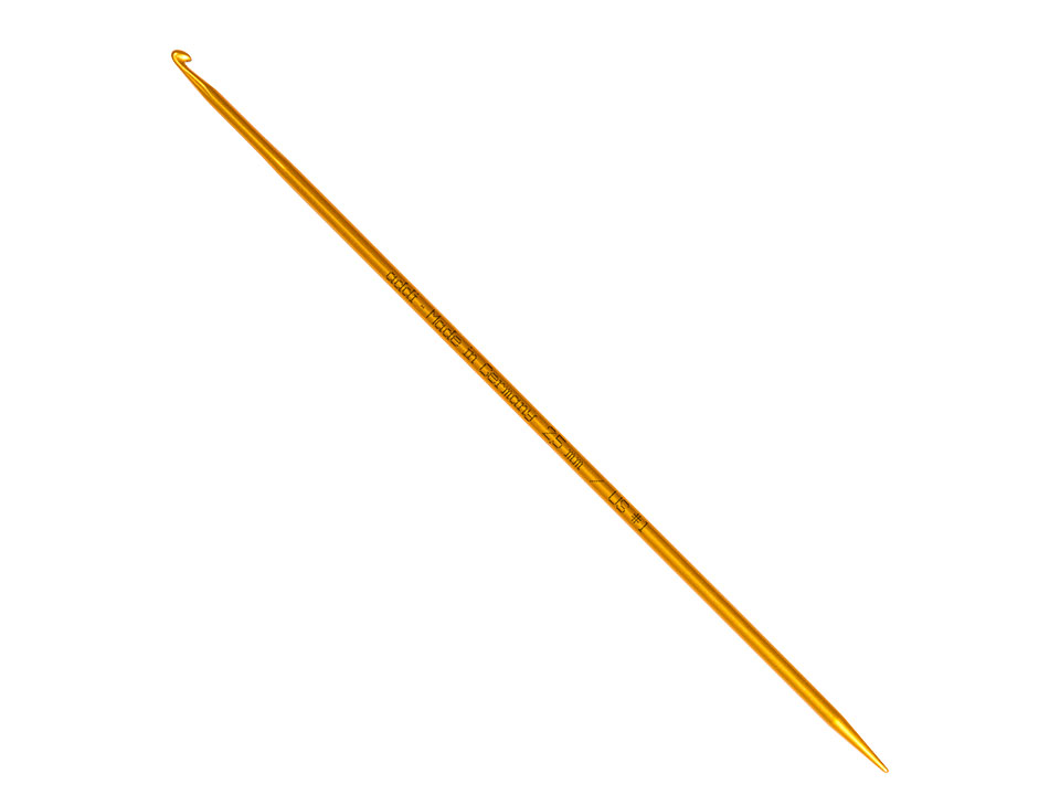 Farbig eloxierte addi-Häkelnadeln mit schlanker Stricknadelspitze am Ende