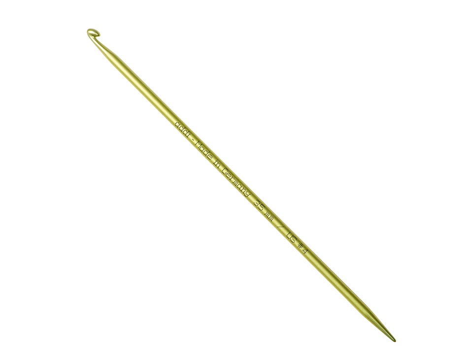 Farbig eloxierte addi-Häkelnadeln mit schlanker Stricknadelspitze am Ende
