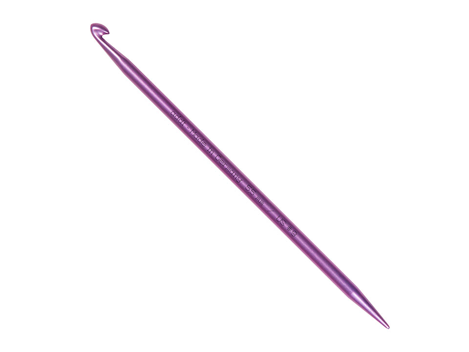Farbig eloxierte addi-Häkelnadeln mit schlanker Stricknadelspitze am Ende