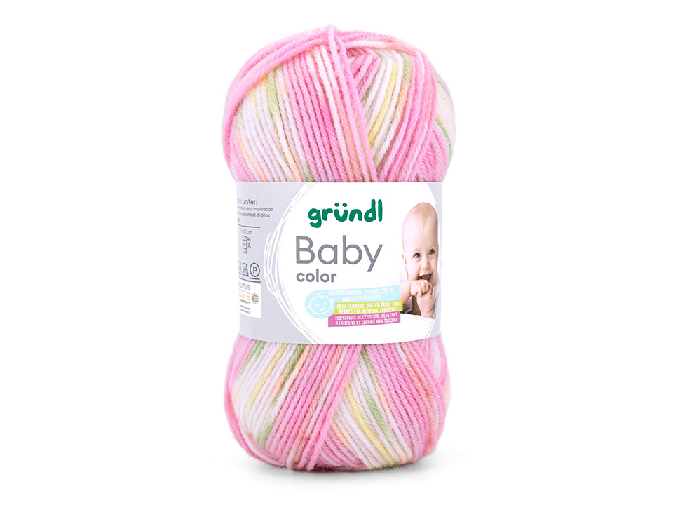 Gründl Baby Color Farbe 02 rosè-hellgrün-hellgelb-weiß - Die colorierte Babywolle für viele Zwecke
