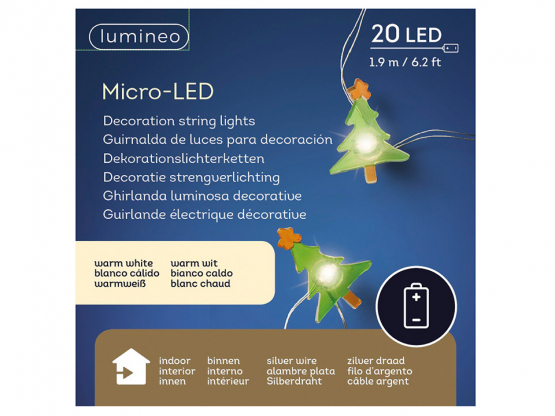 Diese LED Lichterkette als Strangbeleuchtung -mit Mini Tannenbäume aus Plexiglas- ist sehr filigran und deswegen ist für feine Bastelarbeiten sehr gut geeignet. Durch das feine Draht ist es gut zu verstecken und verleiht Ihr Weihnachtsdeko ein besonderen Tuch.